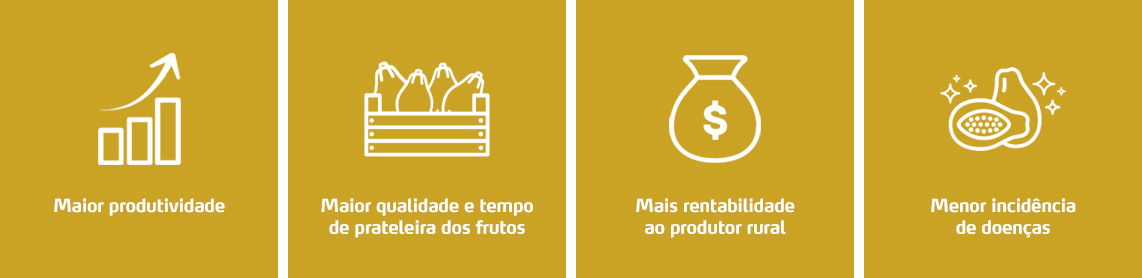 A exigência do mercado consumidor em relação à qualidade do mamão é cada vez maior. E para ajudar você nesse desafio, a Yara traz o Programa Nutricional para o cultivo de mamão, que proporciona alta produtividade do mamoeiro. A maturação dos frutos é mais homogênea e a vida pós-colheita é ainda maior.