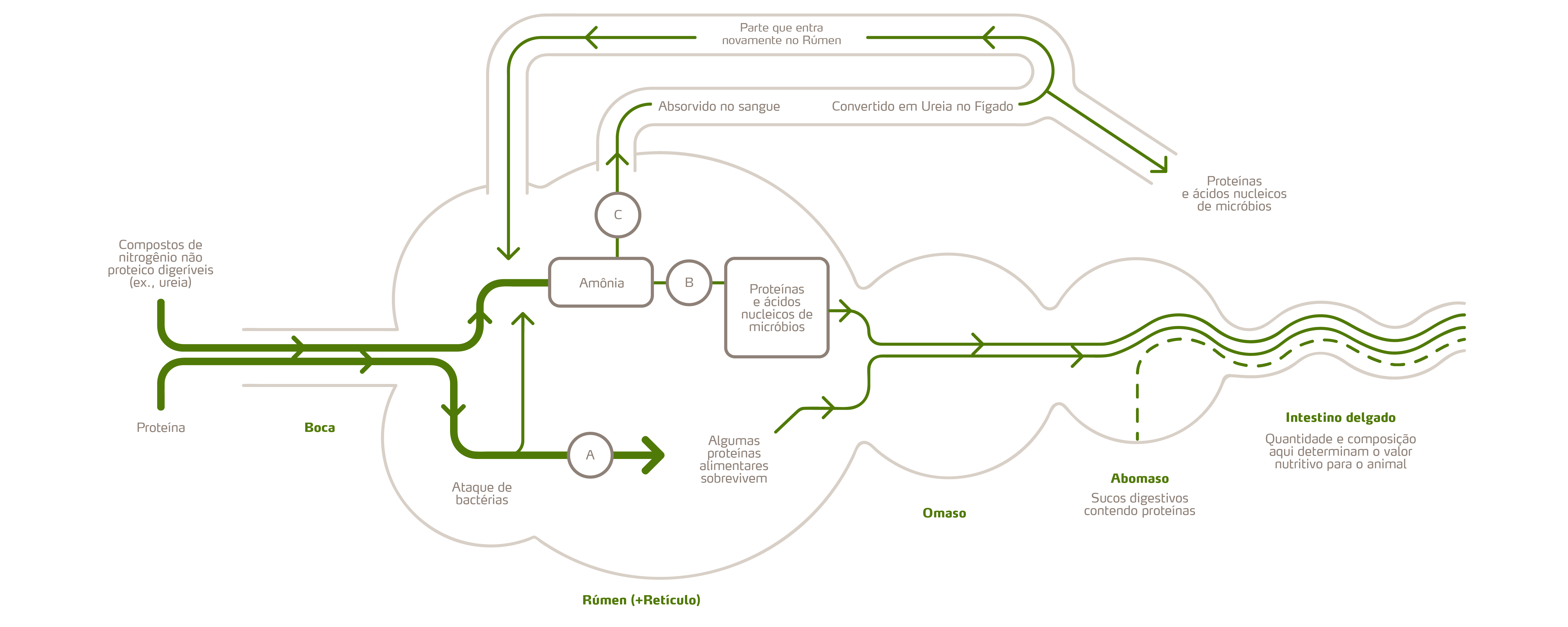 Ruminantes podem usar NNP para sintetizar proteínas microbianas com alto valor biológico. NNP é uma alternativa eficiente para proteínas. A proteína solúvel deve ser balanceada nas rações de ruminantes para permitir o máximo crescimento microbiano e, assim, a síntese de proteína microbiana.